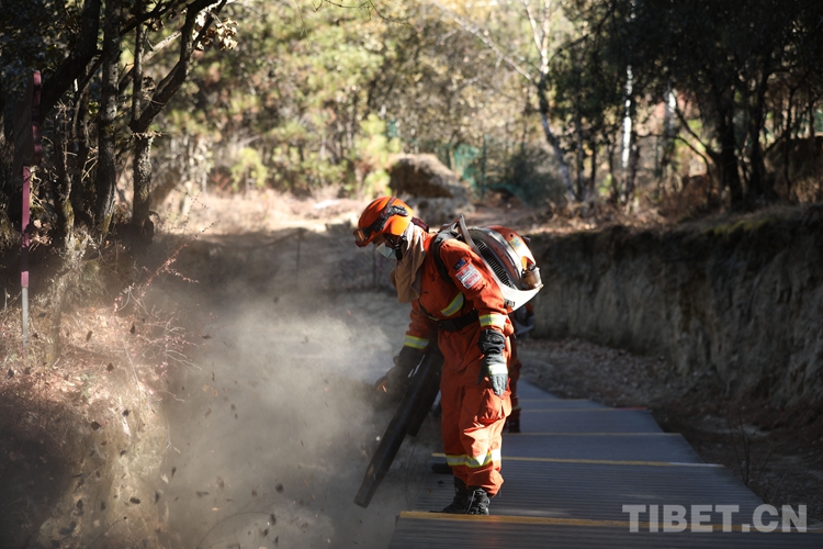 圖為巴宜區(qū)中隊指戰(zhàn)員清理林下可燃物