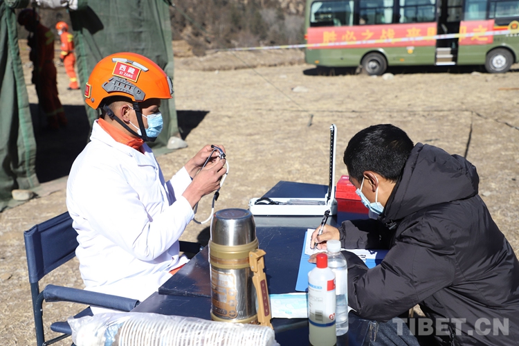 圖為醫(yī)療救護(hù)組及時對被救人員做好防寒保暖工作