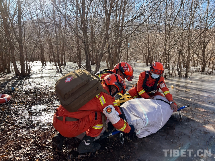 訓(xùn)練前,貢覺縣駐防分隊堅持從實戰(zhàn)出發(fā),提前設(shè)置規(guī)劃冰面落水救援地點。到達(dá)指定位置后,全體指戰(zhàn)員快速反應(yīng),在確保安全的前提下,救援人員采取攜裝匍匐前進(jìn)的方式,有條不紊地操作擔(dān)架與救生圈,救助墜入冰下的遇險人員。安全員及時提醒救助人員冰上隨時可能發(fā)生的突發(fā)狀況。其余人員在受力地點制作錨點進(jìn)行安全輔助。被救人員到達(dá)安全區(qū)域后,醫(yī)療救護(hù)組及時對被救人員做好防寒保暖工作,針對被救人員傷情采取有效急救措施。