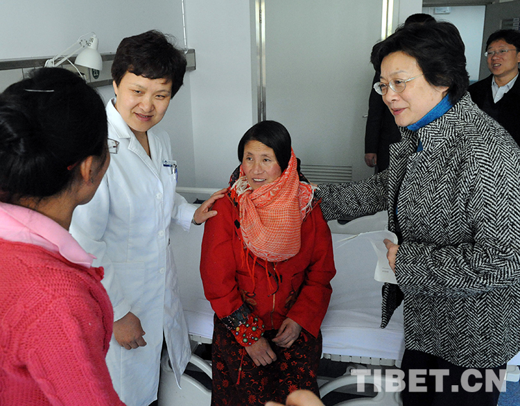 這是時(shí)任全國婦聯(lián)副主席甄硯(右一)受時(shí)任十一屆全國人大常委會(huì)副委員長(zhǎng)陳至立委托,到北京口腔醫(yī)院看望斯求卓瑪,并送來慰問金(唐召明2010年4月14日攝)