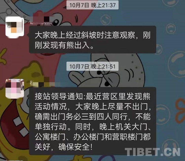 “站起來(lái)比人還高,脖子上還戴項(xiàng)鏈了”“剛剛一直盯著我,我拔腿就跑了,晚上大家還是注意”......這些是該站微信工作群“守邊人”里的真實(shí)對(duì)話。不僅是在三道拐?qǐng)?zhí)勤點(diǎn),該站機(jī)關(guān)所在的迪斯崗和口岸一線的友誼橋執(zhí)勤點(diǎn),也有黑熊長(zhǎng)期徘徊于此。因?yàn)楹谛艽蠖嗍窃谝归g出沒(méi),民警們?cè)诩油臧嗪髸r(shí)常能碰見(jiàn)它們的身影,在單位微信群中,也能不時(shí)收到有關(guān)“熊出沒(méi)”的警示提醒。