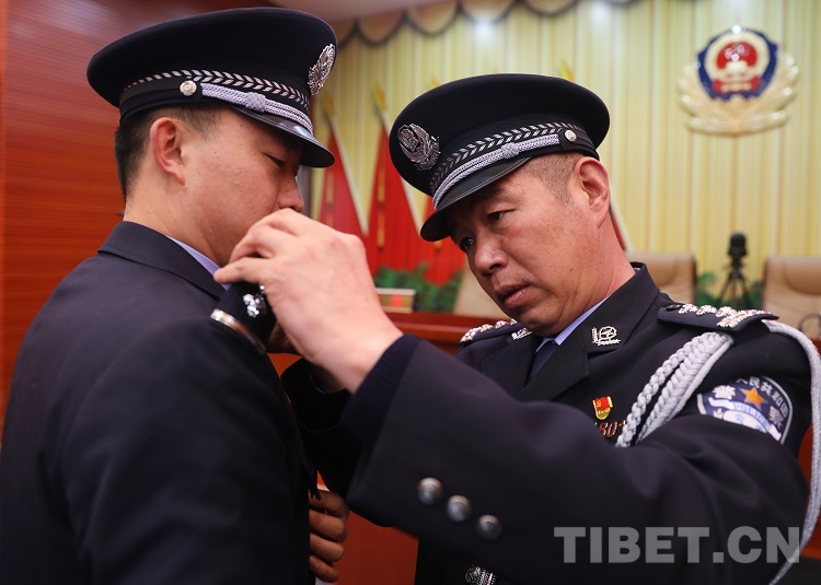 中國西藏網(wǎng)訊 “接國家移民管理局2021年12月24日《關(guān)于授予和晉升計(jì)江飛等同志人民警察警司警銜的命令》,以下7名同志授予一級(jí)警員警銜……”1月10日,西藏自治區(qū)林芝邊境管理支隊(duì)在第二個(gè)中國人民警察節(jié)這個(gè)特殊的節(jié)日里,為92名民警晉升和授予人民警察警銜,進(jìn)一步增強(qiáng)了民警的責(zé)任感、使命感,激勵(lì)廣大民警投身于偉大的移民管理事業(yè)。
