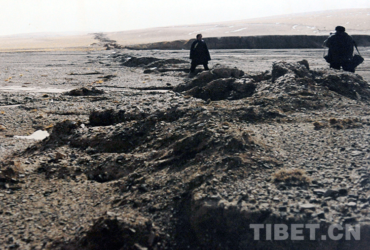 科考表明,藏北無人區(qū)瑪尼地震地表破裂帶位于瑪爾蓋茶卡湖北緣的地震斷裂帶上。這條總體上近于直立的斷裂帶是瑪尼地震的發(fā)震斷層?,斈岬卣鸬乇砥屏褞а乇毕驏|分布。它全長120公里,規(guī)模巨大、現(xiàn)象豐富,由一系列左旋剪切斷層、地裂縫、鼓包等斜列而成??疾爝€表明,這里曾在1973年6月14日、7月11日發(fā)生過兩次里氏7.3級左右的地震。這為以后判定我國大陸大震的發(fā)展趨勢提供了模擬試驗的科學(xué)數(shù)據(jù)。
