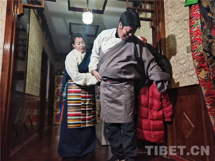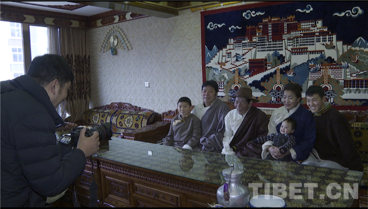 圖為通夏村黨支部書記布嘎一家換藏裝準備拍全家福