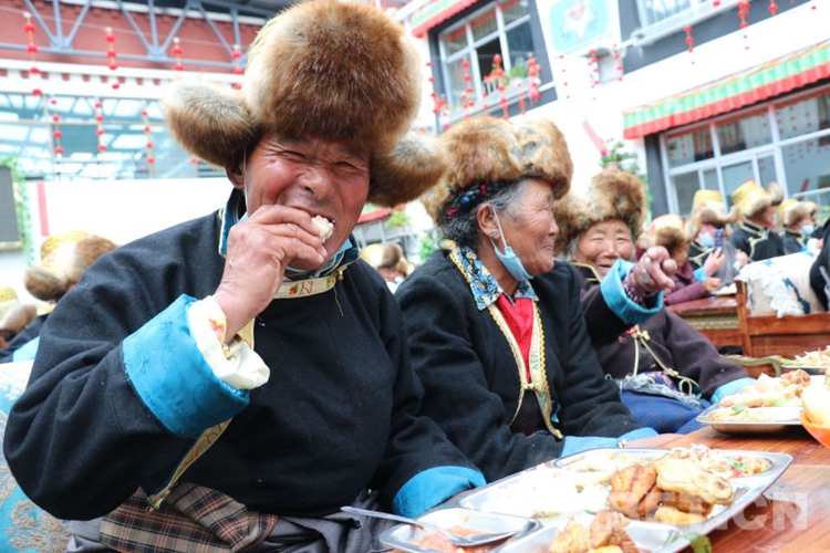 在集中供養(yǎng)中心內(nèi),桌上擺滿了風(fēng)干牛肉、糖果、卡塞、水果等各種食品,老人們身著節(jié)日盛裝,精神抖擻、有說有笑、臉上洋溢著幸福的笑容。政協(xié)主席普瓊送上新年賀詞,并代表縣委、縣人大常委會、縣政府、縣政協(xié)向老人們送去新年問候和衷心祝福。他指出,在黨和政府的關(guān)心關(guān)愛下,在社會各界人士的大力支持下,供養(yǎng)老人享受著美好的幸福生活,希望老人們在享受當(dāng)下幸福生活的同時,知道幸福生活從哪里來的,更要感黨恩、聽黨話、堅定永遠跟黨走的決心。