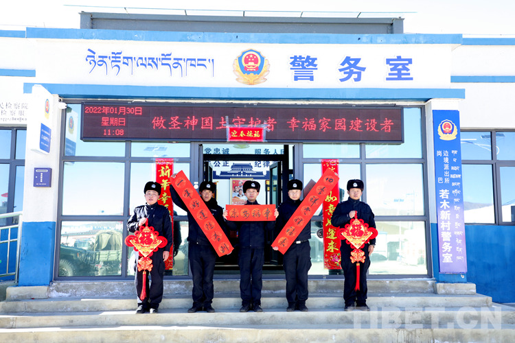 圖為日喀則邊境管理支隊(duì)崗巴邊境管理大隊(duì)若木新村警務(wù)室民警祝福全國(guó)人民新春快樂