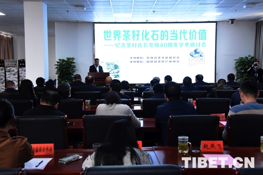 圖為晴隆古茶籽化石發(fā)現(xiàn)40周年座談會現(xiàn)場