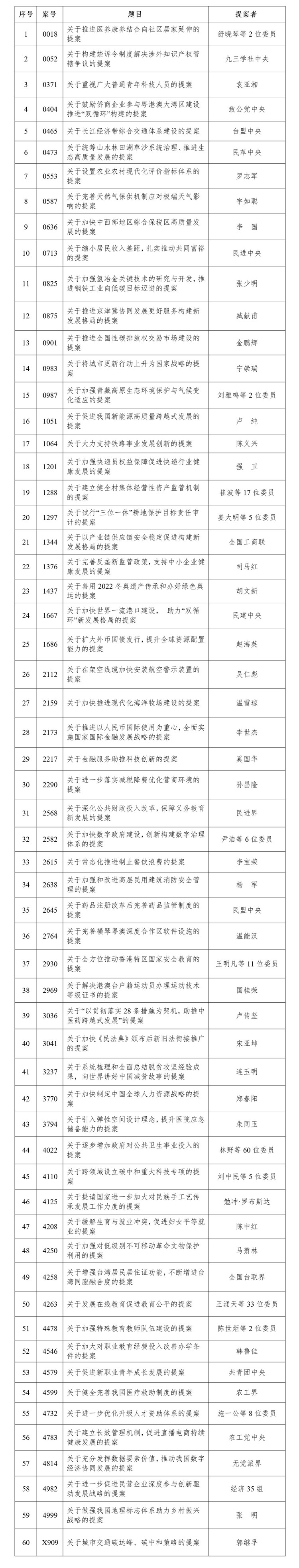 附:全國政協(xié)2021年度好提案名單