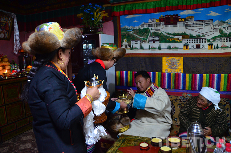圖為初一的早上,一家人一起喝青稞酒 攝影:歐帆