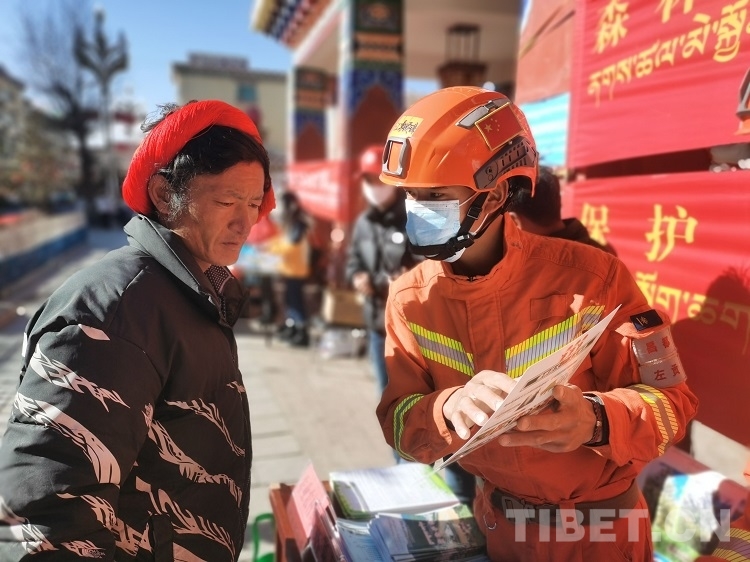 圖為昌都市森林消防支隊(duì)芒康縣駐防分隊(duì)在芒康縣城及周邊鄉(xiāng)鎮(zhèn)開展防火宣傳