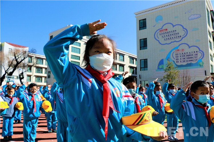 中國西藏網(wǎng)訊 太陽伴隨著初春的微風(fēng)冉冉升起。新的學(xué)期又開始了,3月10日早上,風(fēng)和日麗,陽光明媚,學(xué)生們穿著整潔的校服,戴著鮮艷的紅領(lǐng)巾,來到學(xué)校,興高采烈地期待著新學(xué)期特殊的升旗儀式。應(yīng)拉薩市第一小學(xué)邀請(qǐng),拉薩警備區(qū)某團(tuán)官兵早早出發(fā)前往學(xué)校,官兵們整齊的步伐、筆挺的身影、颯爽的英姿感染著一小學(xué)子。