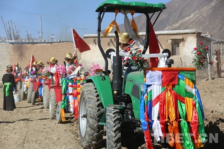 “轟隆隆、轟隆隆......”在墨竹工卡縣唐加鄉(xiāng)東布崗村,一早,村民們便聚集在一起。經(jīng)過一系列祈愿豐收的傳統(tǒng)儀式后,大家便駕駛自家的農(nóng)用機械開始了勞作。數(shù)十輛裝扮一新的農(nóng)用機械宛如一條“長龍”在田間來回穿梭,轟鳴聲響徹山谷之間。秋日豐收的喜悅場景已浮現(xiàn)在所有人的腦海中。