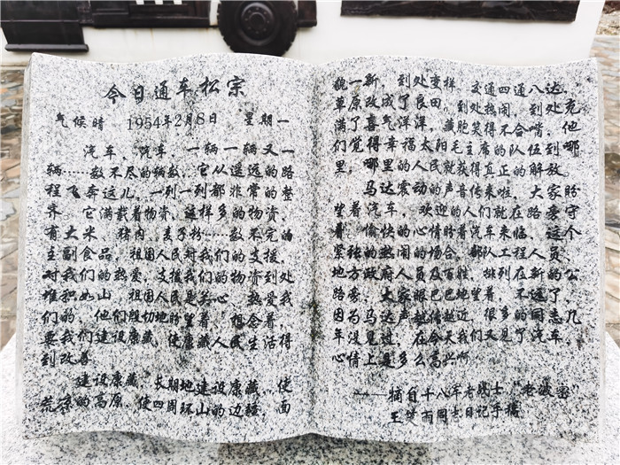為更好地讓廣大干部群眾和八方游客了解筑路運(yùn)輸?shù)钠D難困苦、順利通車波密時的動人場景,2021年12月,波密縣對廣場進(jìn)行了提檔升級,從尊重歷史的角度,進(jìn)一步論證規(guī)范了廣場名稱?!安芡ㄜ嚰o(jì)念廣場”八個鮮紅大字仿佛在講述那段激情燃燒的崢嶸歲月,紅色的碑文篆刻著筑路部隊(duì)驚心動魄修筑康藏公路時的艱辛與磨難,王笑雨同志的日記記錄著汽車駛?cè)氩軙r干部群眾臉上的激動與新奇……教育、激勵和引導(dǎo)廣大干部群眾堅定不移感黨恩、聽黨話、跟黨走。(中國西藏網(wǎng) 圖文/波密縣組織部紅色工作專班)