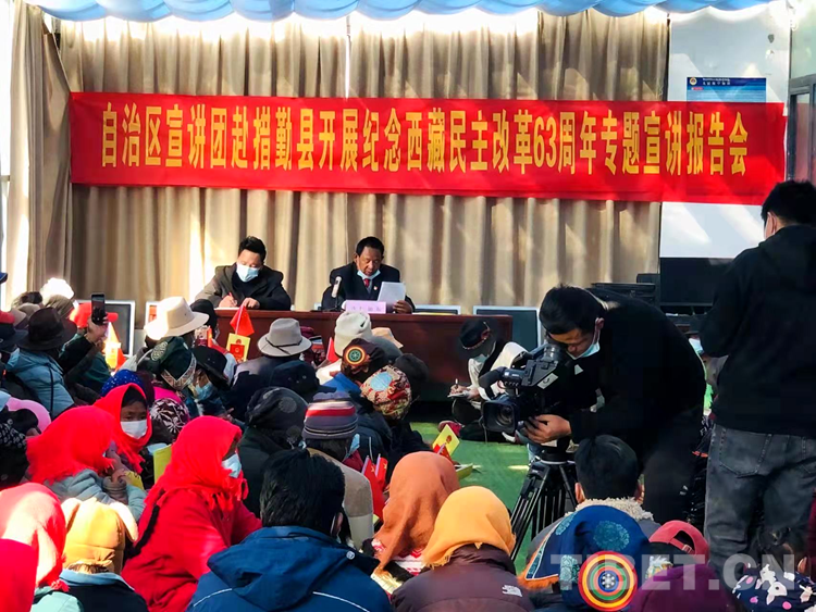 中國(guó)西藏網(wǎng)訊 3月26日,西藏自治區(qū)宣講團(tuán)在阿里地區(qū)措勤縣扎日南木措社區(qū)黨群活動(dòng)中心開展紀(jì)念西藏民主改革63周年專項(xiàng)宣講。扎日南木措社區(qū)黨群活動(dòng)中心約200多名群眾參加。