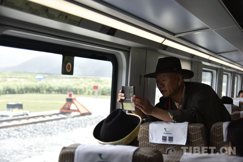 圖為2021年6月25日復(fù)興號(hào)高原雙源動(dòng)力集中動(dòng)車(chē)組即將抵達(dá)西藏林芝站,乘客拍照 攝影:王媛媛