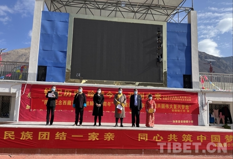 中國(guó)西藏網(wǎng)訊 時(shí)至三月,春回大地。為深入宣傳好西藏百萬(wàn)農(nóng)奴解放的偉大意義,營(yíng)造心向祖國(guó)心向黨、凝心聚力促發(fā)展的濃厚氛圍,3月28日,西藏自治區(qū)山南市加查縣安繞鎮(zhèn)小學(xué)嚴(yán)格按照當(dāng)下疫情防控工作要求,舉行了“紀(jì)念西藏百萬(wàn)農(nóng)奴解放63周年暨建設(shè)美麗幸福西藏共圓偉大復(fù)興夢(mèng)想”慶?;顒?dòng),共同祝愿?jìng)ゴ笞鎳?guó)繁榮昌盛,西藏的明天更加美好。