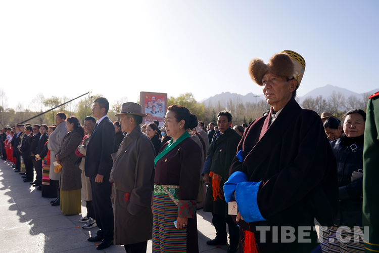 當(dāng)日,布達(dá)拉宮廣場莊嚴(yán)肅穆,用漢、藏文書寫的“3·28西藏翻身農(nóng)奴的節(jié)日”橫幅格外醒目。上午9時許,拉薩的朝陽剛剛升起不久,各族各界群眾早已聚集于此。