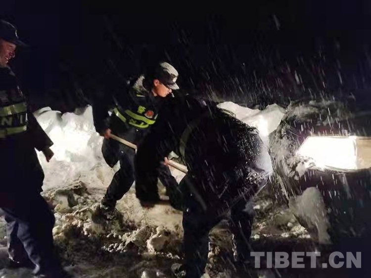 在前往救援途中,民警陸續(xù)又接到3起報警求助電話??梢源_定至少4輛車輛被困。救援工作刻不容緩,竹瓦根邊境派出所民警頂風冒雪,經(jīng)過3個小時的艱難長途跋涉,克服高海拔缺氧,道路側滑等危險和困難,及時趕到事故現(xiàn)場開展救援。截至4月2日凌晨3點30分,竹瓦根邊境派出所民警先后救助被困車輛4臺,救助被困群眾8人。在護送返回途中,一行人員又遭遇雪崩,道路受阻。移民警察和當?shù)仞B(yǎng)護段工作人員共同努力,用2個小時,打通了一條“生命大通道”,成功將被困群眾和車輛安全轉(zhuǎn)移。