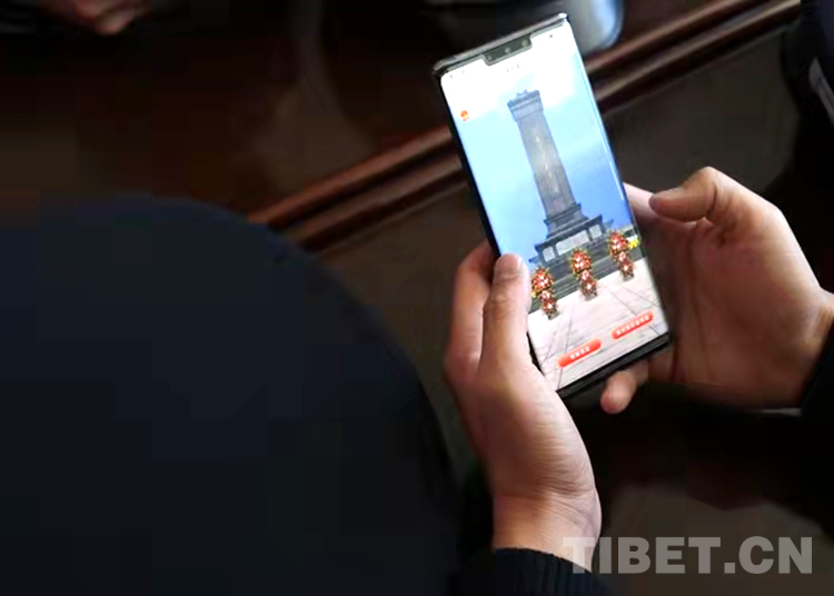 圖為崗嘎邊境派出所民警進(jìn)行網(wǎng)上祭奠