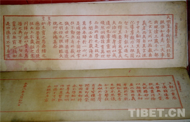 藏文古籍文獻是我國各民族交往交流交融的產(chǎn)物。就藏文古籍文獻中的精品典籍《大藏經(jīng)》而言,從公元7世紀(jì)佛教傳入吐蕃,開始本土化、中國化的進程中,高僧大德不斷進行翻譯、集結(jié)、傳抄、刻版、印刷,形成豐富多彩、卷帙浩繁的《甘珠爾》和《丹珠爾》?!洞蟛亟?jīng)》集成、刊印、流傳離不開歷代中央政府和帝王將相、各民族信眾、高僧大德的支持。比如,西夏時期,黑水城等地首次出現(xiàn)了藏文經(jīng)咒的刻印本。有元一代,《甚深內(nèi)義明本釋》等經(jīng)典刻印本在元大都問世。12世紀(jì),納塘寺堪布覺丹熱智搜集編纂納塘《大藏經(jīng)》時,其弟子從上都一帶寄送了大量的內(nèi)地紙墨。明代,永樂和萬歷皇帝分別在南京和北京完整刊刻印刷藏文《甘珠爾》,開啟了大規(guī)模刊印藏文文獻的歷史。清代,康熙和乾隆朝,在北京刊印了北京版《甘珠爾》和《丹珠爾》,并把藏文《大藏經(jīng)》相繼翻譯成滿文、漢文、蒙古文等多種文字,為我國各民族交往交流交融起到了推動作用。藏文典籍文獻的刊印、流傳、保存,對藏語言文字規(guī)范、佛教文化保護傳承、不斷豐富民族文化等方面起到了重要作用。同時,也進一步促進了各民族交往交流交融。