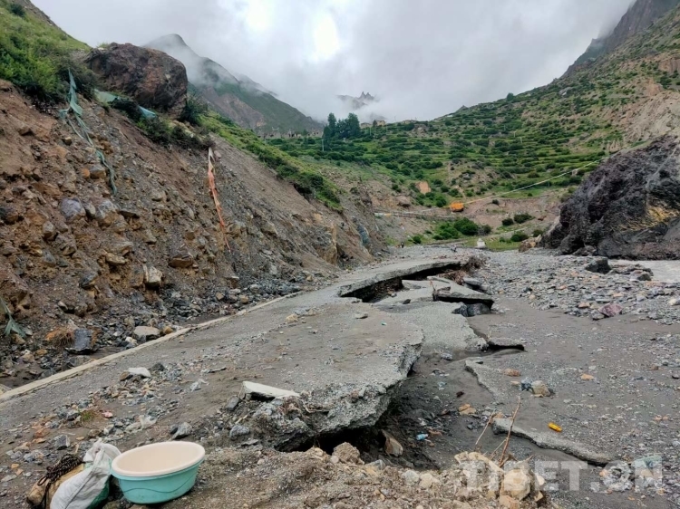 圖為被大雨沖毀的路面