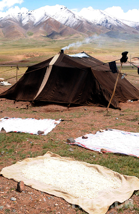 在藏北草原,夏天是牦牛產(chǎn)奶旺季,牧民此時(shí)吃奶類(lèi)食物比別的季節(jié)多。喝的奶大多是牦牛奶,其次為綿羊奶和山羊奶。人們既喝鮮奶,也喝酸奶、吃奶渣。奶渣大多是拌糌粑時(shí)食用。