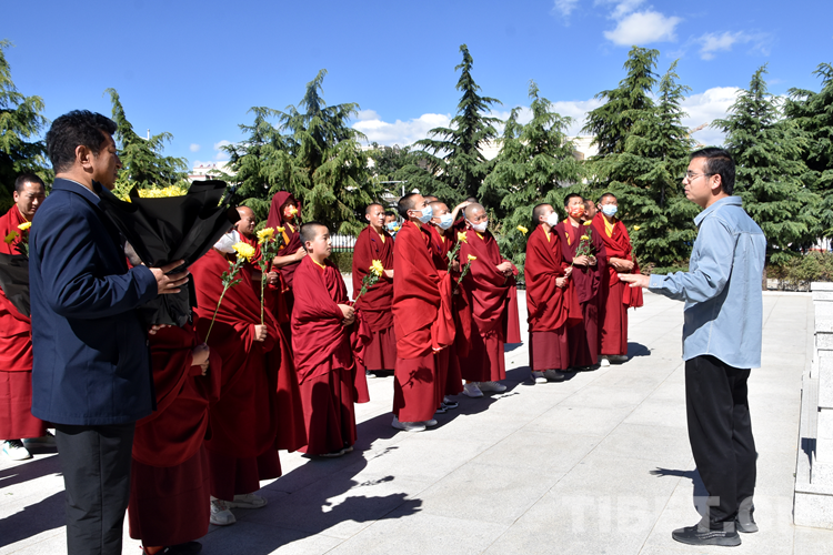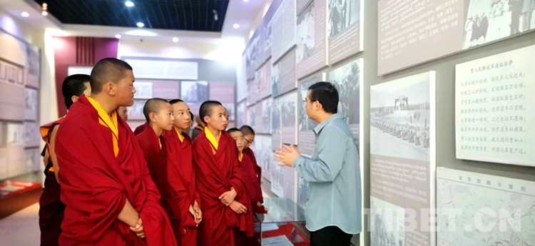 在譚冠三紀(jì)念園參觀時(shí),少年活佛在譚冠三將軍陵墓前集體默哀并敬獻(xiàn)花朵,向革命先輩致以崇高敬意。隨后,在紀(jì)念園相關(guān)負(fù)責(zé)人的講解下認(rèn)真傾聽譚冠三將軍扎根邊陲、艱苦奮斗的感人事跡。參觀期間,少年活佛們被一幅幅圖片、一個(gè)個(gè)生動故事深深吸引,對革命先烈和十八軍戰(zhàn)士在解放西藏、建設(shè)西藏中形成的“老西藏精神”有了更加深刻的領(lǐng)會。