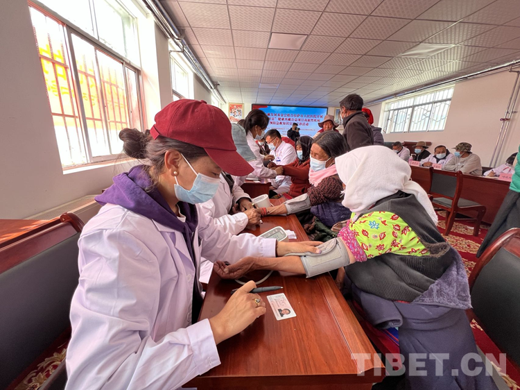 當(dāng)天,來自拉薩市人民醫(yī)院第七批“組團(tuán)式”援藏醫(yī)療隊(duì)專家及本地醫(yī)療專家們組成醫(yī)療團(tuán)隊(duì),準(zhǔn)時(shí)抵達(dá)當(dāng)雄縣格達(dá)鄉(xiāng),組成心內(nèi)科、疼痛科、普外科、內(nèi)科、呼吸內(nèi)科、骨科、消化內(nèi)科等7個(gè)診療組,為當(dāng)雄縣格達(dá)鄉(xiāng)牧民群眾進(jìn)行義診。格達(dá)鄉(xiāng)四個(gè)村的牧民群眾有序排隊(duì)等待問診?;顒?dòng)現(xiàn)場(chǎng),專家們?yōu)槟撩袢罕娏垦獕?、測(cè)血糖、問診、開處方,做B超,耐心解答就診群眾的各種問詢。醫(yī)療專家對(duì)群眾進(jìn)行基礎(chǔ)身體檢查的同時(shí),還針對(duì)群眾的身體健康狀況,特別是高原性疾病方面,提出相應(yīng)的治療建議、合理用藥指導(dǎo)、健康飲食建議,以及相關(guān)急救知識(shí)。