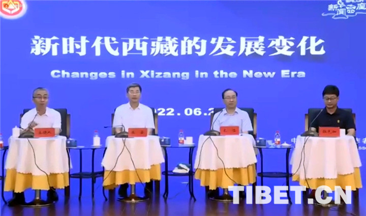 圖為6月22日,中國藏學研究中心二級研究員、學術委員會委員張云(左二),社會經濟研究所所長、研究員扎洛(左三),宗教研究所副所長、副研究員拉先加(右一)參加中國記協(xié)舉辦的“新時代西藏的發(fā)展變化”新聞茶座 截圖:劉莉