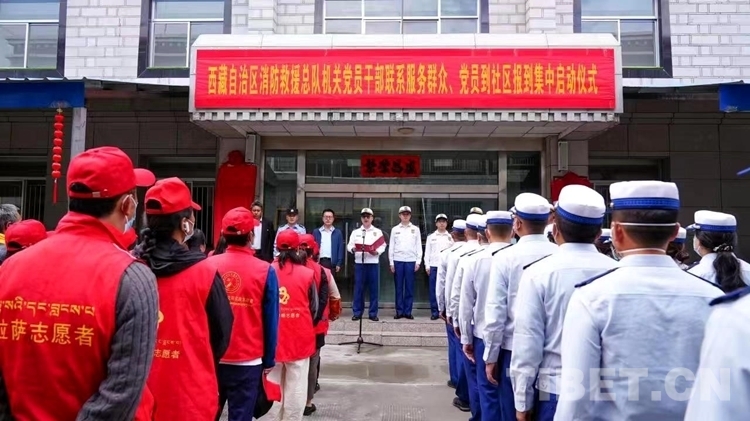 中國(guó)西藏網(wǎng)訊 6月27日,西藏自治區(qū)消防救援總隊(duì)機(jī)關(guān)黨員干部聯(lián)系群眾、黨員到社區(qū)報(bào)到集中啟動(dòng)儀式在拉薩市城關(guān)區(qū)兩島街道辦舉行。