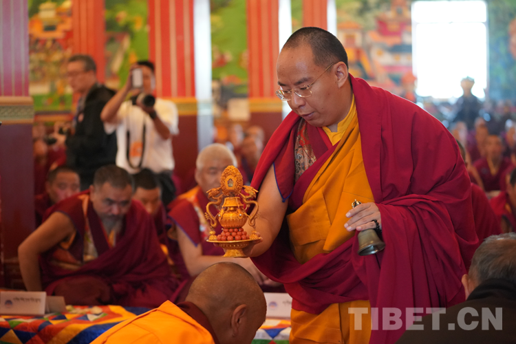班禪表示,西藏佛學院要把培養(yǎng)藏傳佛教愛國愛教的人才,作為落實習近平新時代中國特色社會主義思想的具體行動。在座的有師生代表,還有很多年輕的活佛,看到你們我就看到了藏傳佛教的未來。我希望年輕一代的藏傳佛教界代表人士,高舉愛國愛教旗幟、不忘愛國愛教初心、牢記護國利民的使命,用我們一生的心血和努力來繪就出中國藏傳佛教在新時代的宏偉藍圖。