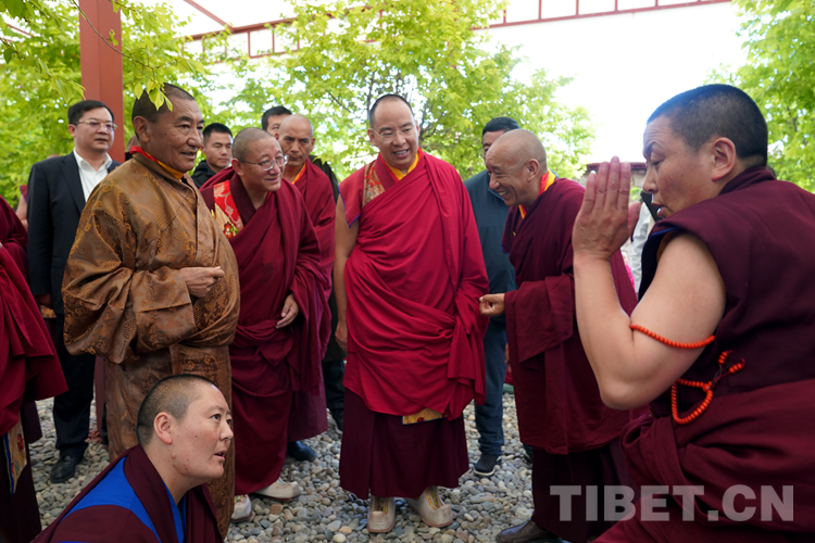 班禪表示,今天來到學院看到無論是硬件上、軟件上,都功德具足、法喜圓滿。我想一切的外在條件都已經萬事俱備,只需要我們全體師生奮發(fā)圖強,珍惜把握學習時光?!白8W院師生們健康長壽,用我們現有的人生為祖國、為民族、為中國特色社會主義的建設、為藏傳佛教中國化做出更多的貢獻。祝愿大家六時吉祥、十相自在、功德圓滿!”