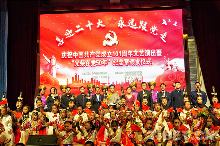 圖為“光榮在黨50年”紀念章頒發(fā)儀式現(xiàn)場