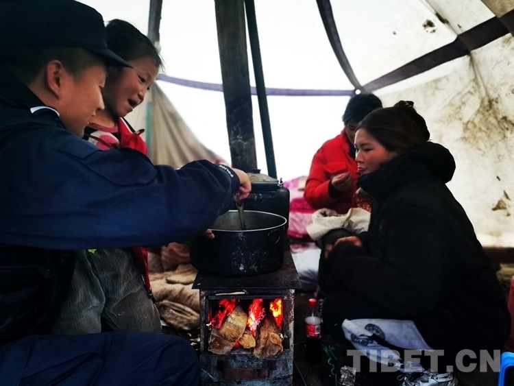 隨后,民警了解到小曲珍的家人上山挖蟲草至今未歸,孩子一直在帳篷外等待家人。民警一邊安慰小曲珍,一邊幫助她生火燒飯,耐心地陪伴孩子度過焦急的等待。