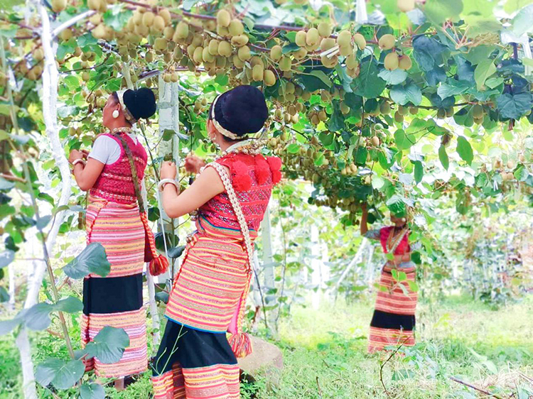 圖為僜人姑娘在獼猴桃樹下采摘 圖片由高永徐提供