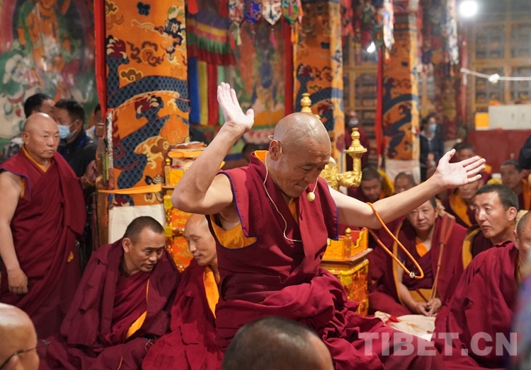 按照傳統(tǒng)宗教慣例,2023年度西藏自治區(qū)藏傳佛教學(xué)經(jīng)僧人晉升格西拉讓巴學(xué)位夏季預(yù)考首先舉行了佛事活動和誦經(jīng)儀式。之后,來自西藏、云南的13名考僧圍繞《釋量論》《般若學(xué)》《中觀學(xué)》《俱舍論》《戒學(xué)》五部經(jīng)典內(nèi)容進(jìn)行激烈答辯。