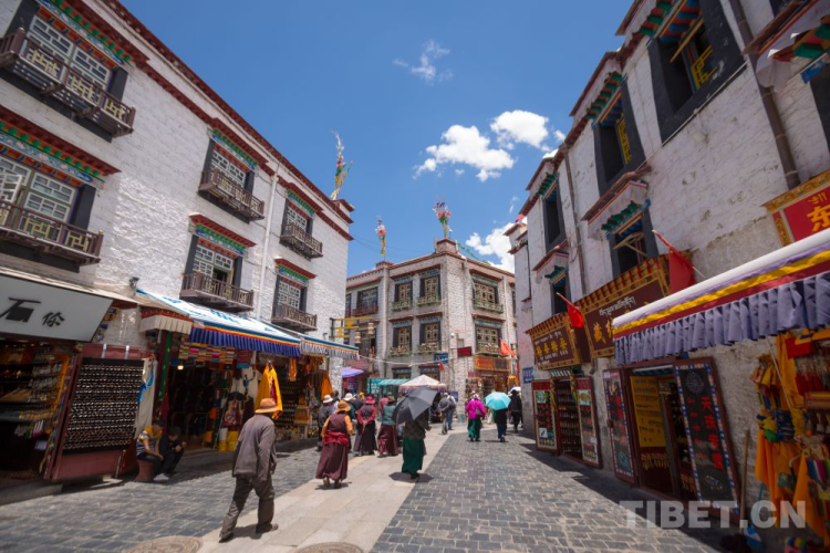 這里是拉薩古城中心,是拉薩經(jīng)濟(jì)、文化、民族手工藝和風(fēng)土人情的集合地,自古便吸引了大量外地商人來此謀生。千百年間借助繁忙的商貿(mào)往來,各民族之間實(shí)現(xiàn)深入交往、交流、交融。如今,“老字號”藏裝店、藏餐館、茶館,與特色文創(chuàng)商店、具有西藏特色的新式茶飲連接起八廓街的傳統(tǒng)與現(xiàn)代,延續(xù)千年八廓街的繁榮。