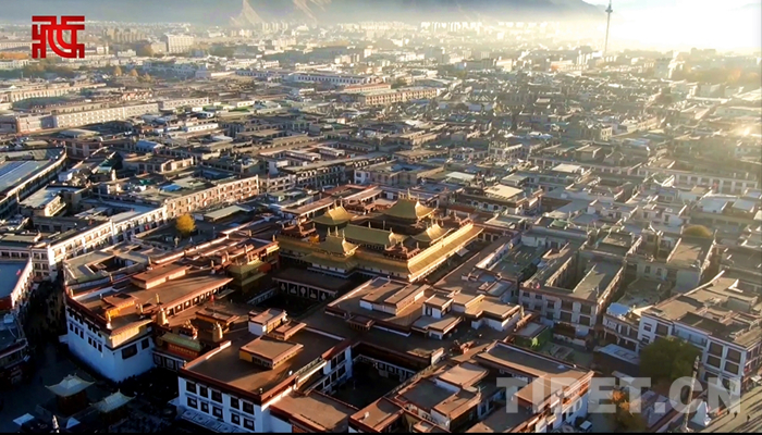 圖為環(huán)繞大昭寺的八廓街 圖片截取自《【雪域視評(píng)·跟著總書(shū)記看西藏⑤】千年八廓街見(jiàn)證民族團(tuán)結(jié)》