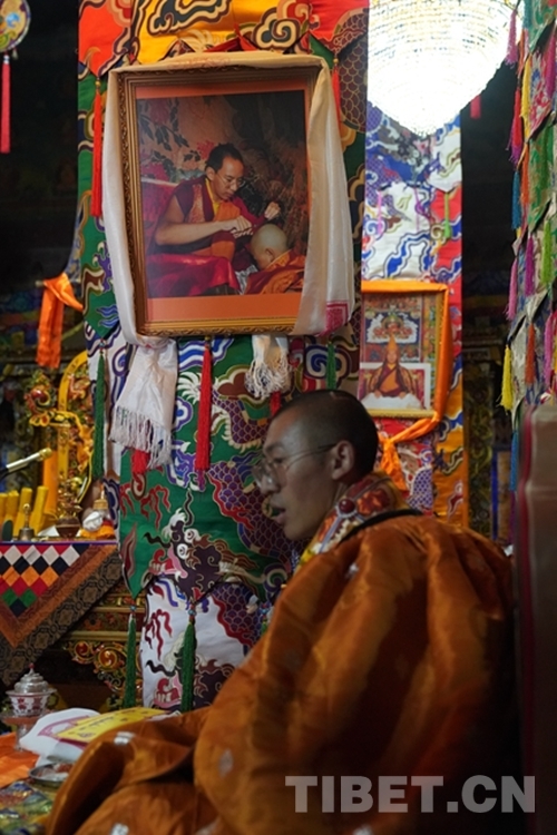 圖為第六世德珠?加央西繞班旦,上方照片為班禪額爾德尼?確吉杰布為第六世德珠活佛剃度 攝影:王淑