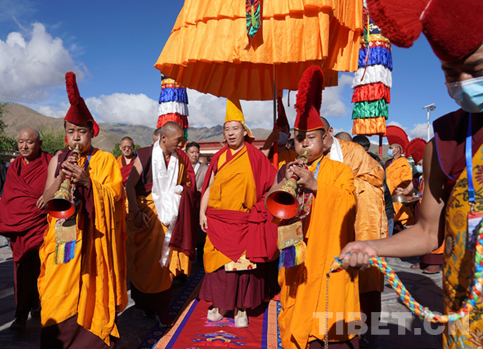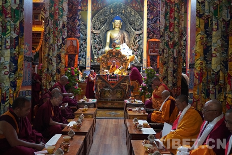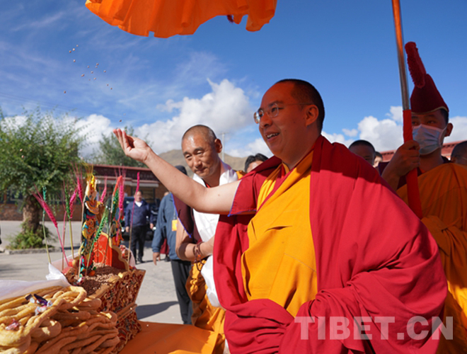 當日,全國政協(xié)常委、中國佛教協(xié)會副會長、中國佛教協(xié)會西藏分會會長班禪額爾德尼?確吉杰布前往山南市隆子縣扎果寺禮佛講經。