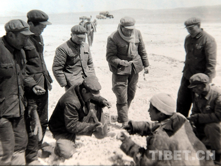 這是西藏自治區(qū)黨委書記熱地(當(dāng)時設(shè)有第一書記,后排戴圍巾者)于1976年考察雙湖辦事處的工作情況(唐召明翻拍資料圖片)