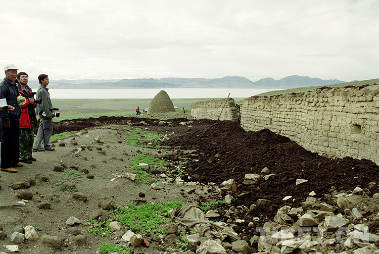 這是人們在參觀雙湖辦事處前身的申扎縣加林工作組遺址。它位于加林山下的俄東溝(唐召明2001年攝)