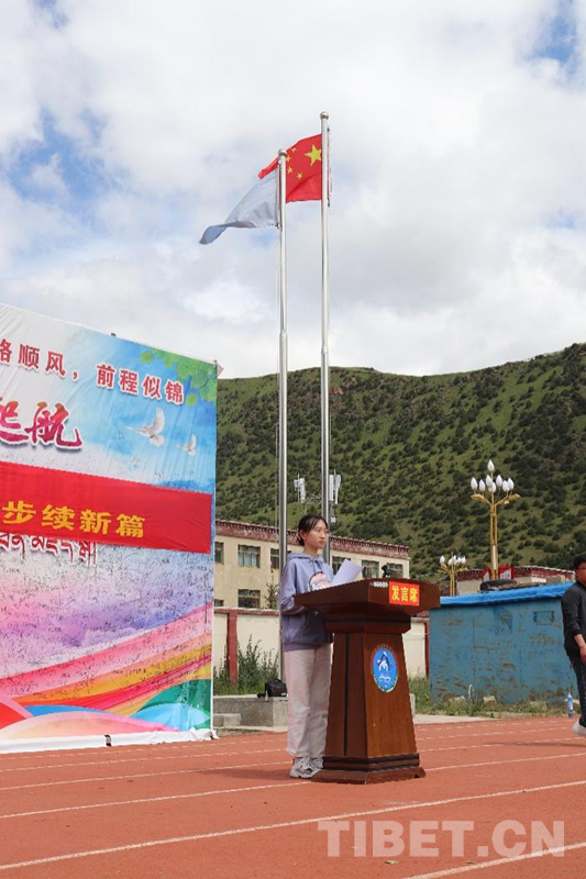 圖為閆關(guān)夏子同學(xué)在國旗下發(fā)表民族團結(jié)主題演講 李彤彤 攝