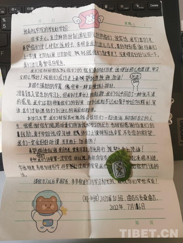 此次嘉黎之行,讓我真切地感受到了西藏同胞的純樸、熱情、善良。孩子們課堂上的認(rèn)真思考、仔細(xì)演算、積極回答都給我們留下了深刻的印象。我們一起過林卡,一起吃飯,到家里做客……無數(shù)的言行舉止之間都流露出他們的講禮貌、重禮儀。我們也結(jié)識了為這片熱土奉獻多年青春的公安政委、校長、書記等等,正是他們的無私付出,讓雪域高原欣欣向榮,富強美麗。未來,我們也將與嘉黎縣中學(xué)建立長期的合作,號召更多南航學(xué)子為當(dāng)?shù)貛ハM猓?/p>