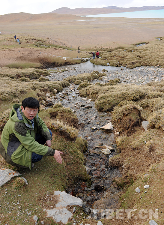 這是王飛在班戈縣青龍鄉(xiāng)六村“浩秀泉”水旁,介紹班戈縣與中國石化將合作開發(fā)的冰川礦泉水項(xiàng)目(唐召明2015年5月20日攝)