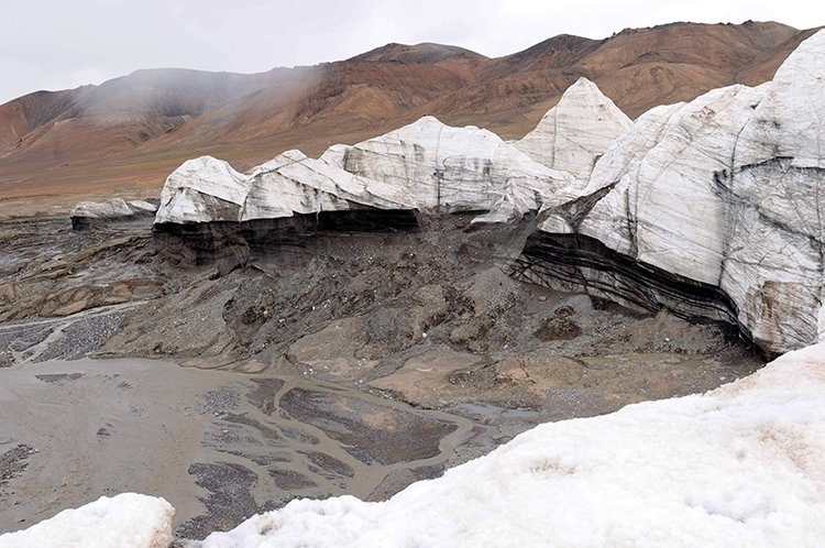 過河后我們停車,徒步在向?qū)У膸ьI(lǐng)下走向冰川。這就是被確認(rèn)為除南極、北極以外的世界第三大冰川?。?/p>