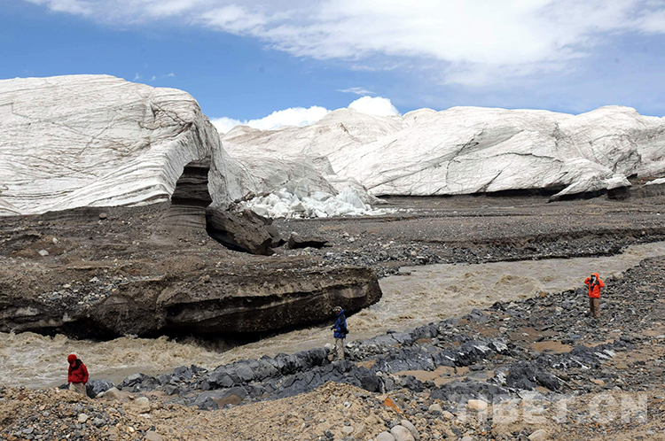 我們所觸摸的普若崗日冰川面積為422平方公里,冰原表面平坦,呈西北東南方向條形分布。冰原向四周山谷放射,溢出50多條長短不等的冰舌,最低處海拔5350米,最高海拔6800多米。