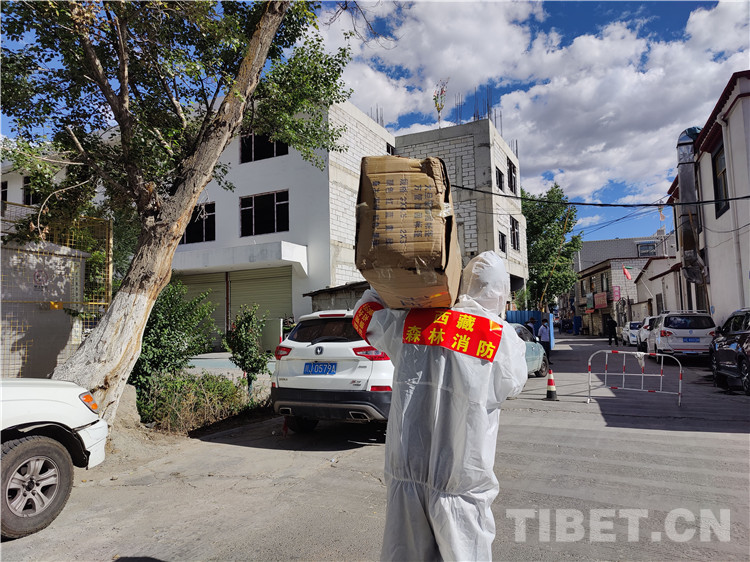 拉薩市森林消防特勤大隊出動135名救援隊員,在拉薩市城關(guān)區(qū)加榮社區(qū)、塔瑪社區(qū)、藏?zé)嵘鐓^(qū)、納如社區(qū)等9個地點開展核酸檢測秩序維護、防疫物資搬運和防疫消殺等工作。