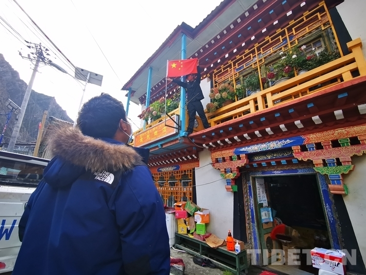 “老奶奶,我?guī)驮蹅兗野褔鞉斓介T口最醒目的地方……”說著,林芝邊境管理支隊(duì)金東邊境派出所民警楊子拿著紅旗走向了卓瑪拉姆老人家門口,在老人家門口插上了耀眼的五星紅旗。