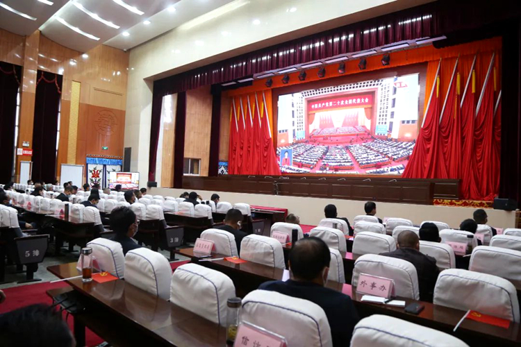 圖為山南市委禮堂內(nèi)干部群眾集中收聽收看黨的二十大開幕盛況。